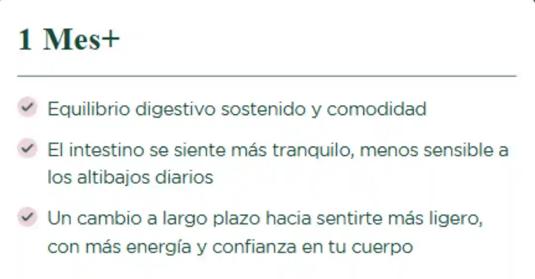 Fórmula con enzimas digestivas y hierbas de grado clínico que actúan rápido para aliviar la hinchazón, equilibrar el microbioma y devolverle a tu estómago una sensación de ligereza y calma, sin laxantes ni trucos.