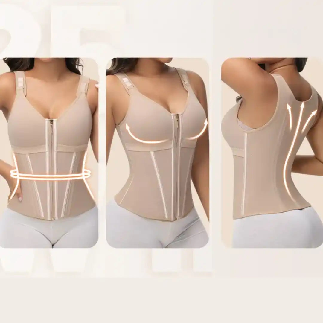Con estructura de varillas internas y un sostén integrado, este chaleco ajusta tu cintura y levanta el busto de manera cómoda, manteniendo postura erguida sin perder flexibilidad.